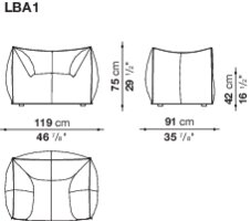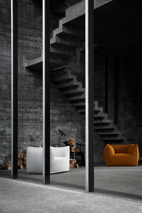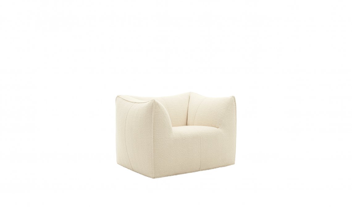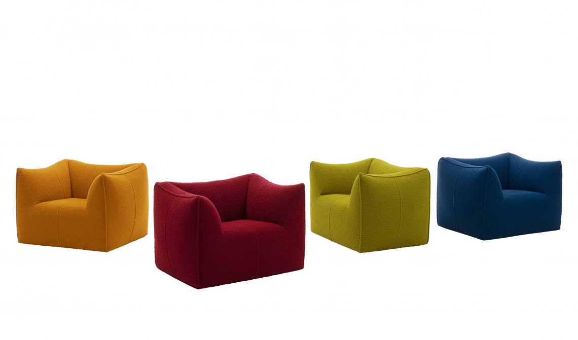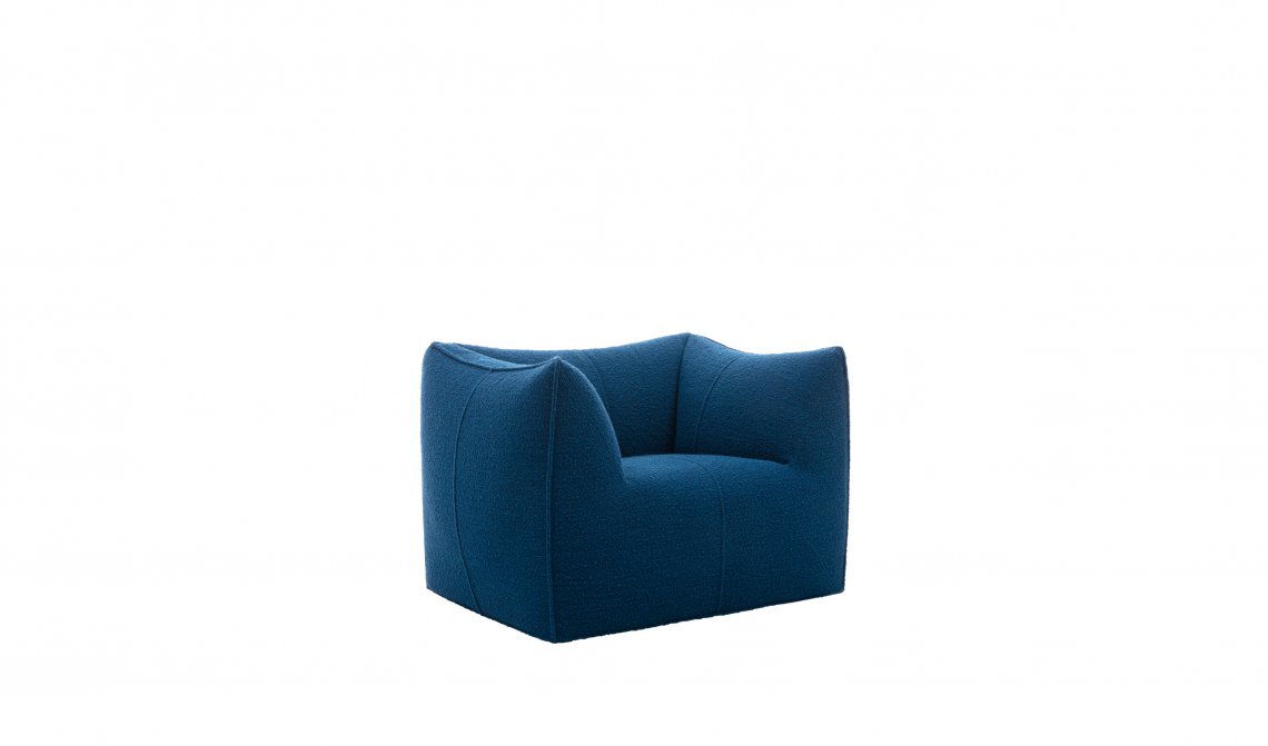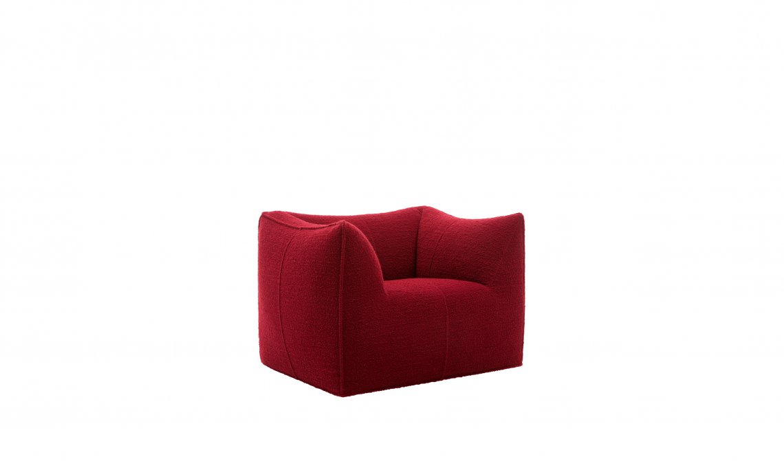The Bambola armchair is part of Le Bambole series, originally designed in 1972, awarded with the Compasso d’Oro in 1979. Icon of timeless contemporaneity and one of the most effective expressions of Made in Italy excellence combining research and creative flair, Le Bambole have provided a very personal answer to the theme of seats. What makes them special is the apparent absence of a load bearing structure, the extreme naturalness of the shape, and the combination of comfort, softness and elasticity that their appearance conveys. Where the original construction was based on a metal structure embedded in polyurethane, now the materials used are of the latest generation, starting from recycled polyethylene gives structure. A sustainable project thanks to the choice of materials and the construction method, that allows the components of Le Bambole to be completely disassembled and therefore easily recyclable.