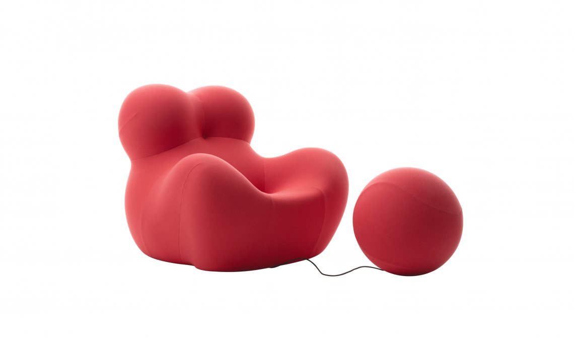 The version of the UP5_6 armchair and ottoman in coral pink Lora fabric can be ordered exclusively through the Direct to Consumer channels (e-Commerce, Monobrand and Flagship Stores).