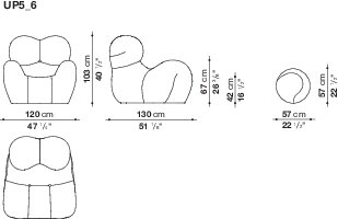 An exclusive version of the iconic UP5_6 chair. The trendiest nuance coral pink is an innovative color that encourages consumers to add color or a sense of fun to their day. Designed in 1969, from the onset, the UP series has been one of the most outstanding expressions of design with its expressive shapes upholstered with elastic fabric. This innovative solution, poised midway between design and art, and conceived to be offered to a wide audience, stems from B&B Italia’s extensive technological manufacturing with polyurethane injection molding. Particularly noteworthy among the armchairs is the iconic UP5_6 with its unmistakable anthropomorphic references: a metaphor of a large womb, it calls to mind ancient statues of the goddesses of fertility. Additionally, a spherical ottoman tied to the armchair contrasts the image of comfort and convenience with a more figurative one that renders a woman with a ball and chain tied to her foot.
