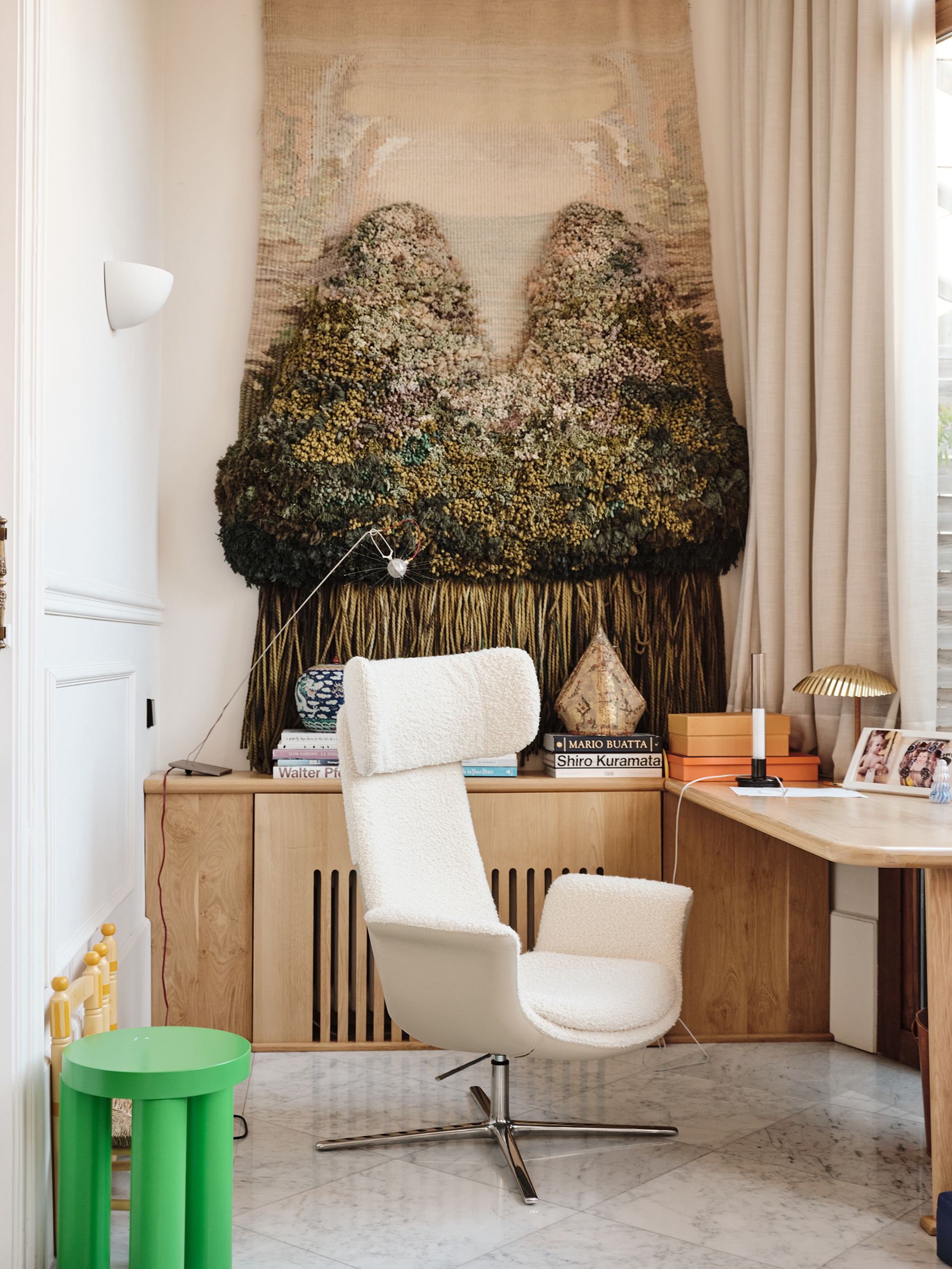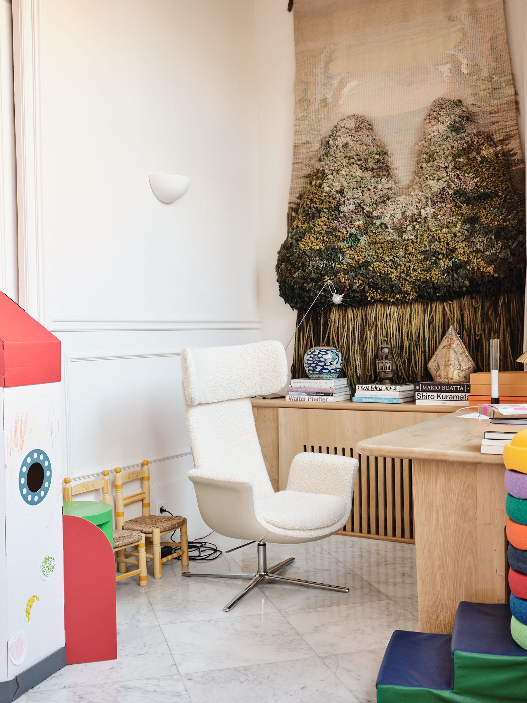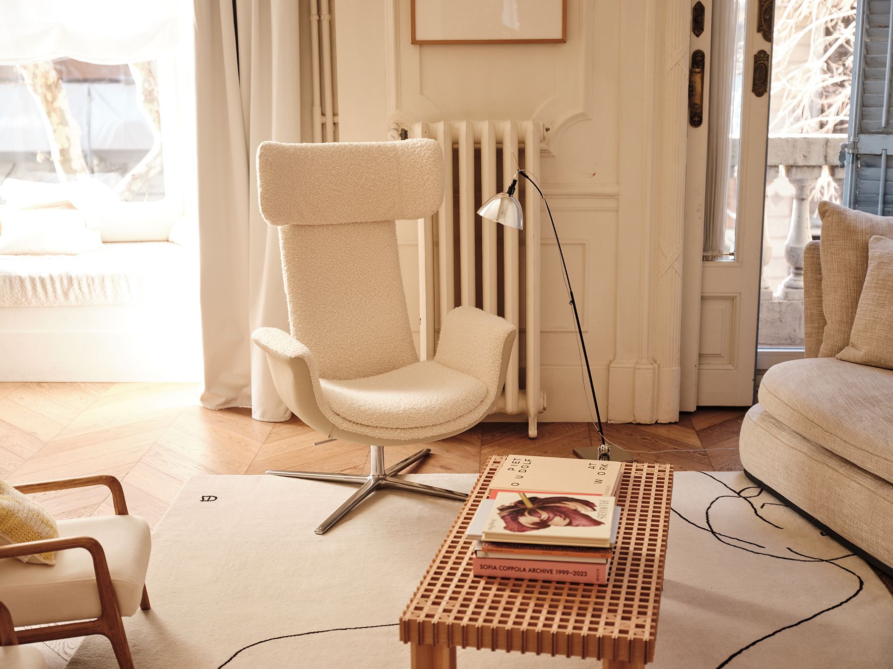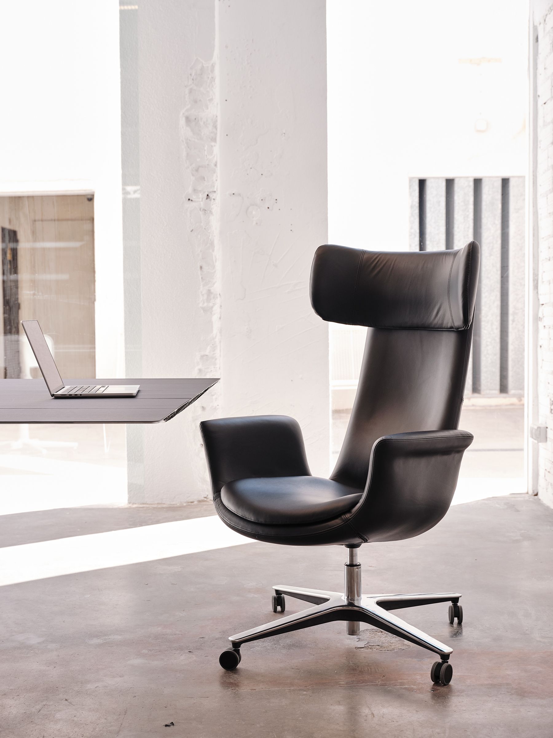 Odyssey could be described as autobiographical. Reflecting the journey from the designer’s native Ibiza to explore the nature of Space through his eclectic oeuvre. An expression of gravity-defying seating that envelops the human body. Its kinetic and sculptural qualities come together in a fluid silhouette. The adjustable headrest and tilting mechanism together with the curved forms recall futuristic Science Fiction.