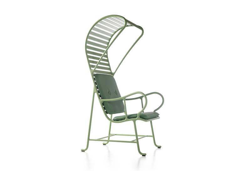 Estructura fabricada en fundición y extrusión de aluminio. Pintadas en blanco (RAL 9001), verde (RAL 6021)