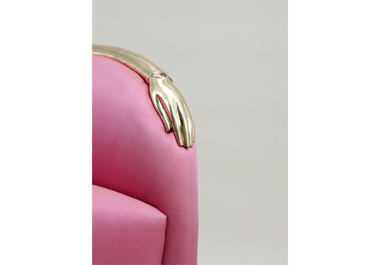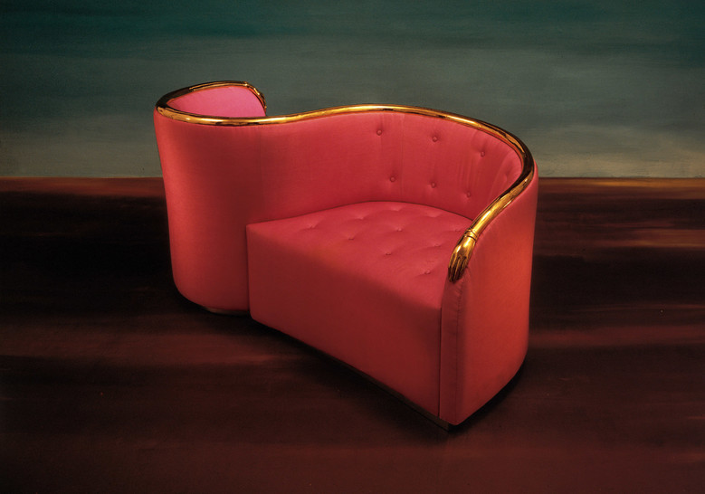 Sofá confidente extraído del cuaderno de dise?os dalinianos para Jean Michel Frank. Típica interpretación