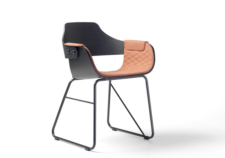 La silla Showtime le hace honor al nombre de la colección. Dos estructuras distintas para las patas, apoyabrazos