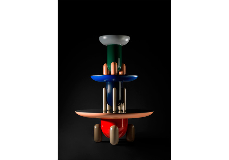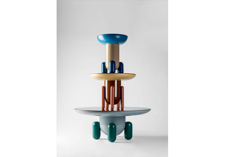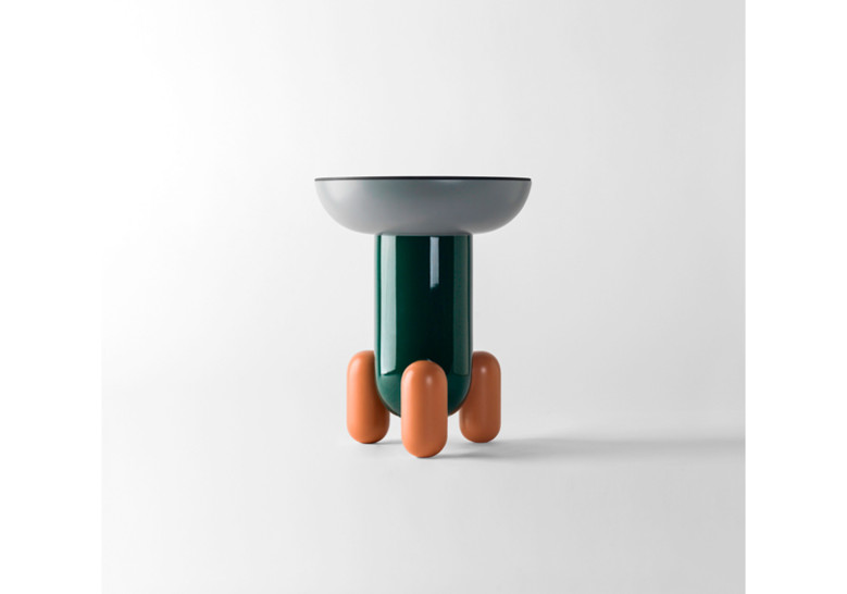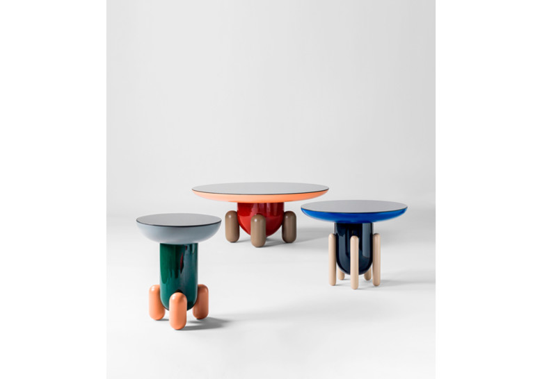 Una serie de mesas auxiliares –Explorer 1, 2 y 3– de inspiración juguetona que recuerdan a los jelly-beans, esos caramelos redondeados que comen los ni?os en EE.UU. Esa inspiración infantil tiene al mismo tiempo una belleza muy elegante que es algo que caracteriza el dise?o que hago generalmente. Se trata de formas nuevas, objetos diferentes dentro del mercado que se quieren convertir en piezas emblemáticas, porque estas mesas además de ser funcionales son escultóricamente potentes. El hecho de lacar algunas partes en acabado brillante y otras en mate al mismo tiempo, las superficies reflectantes de los sobres y las diferentes combinaciones de colores le dan aún más juego a esta colección que pretende ser descaradamente decorativa. Son piezas que comunican. Hay también versiones en monocolor con el mismo carácter escultórico y exclusivo que queremos ofrecer a través de BD.
