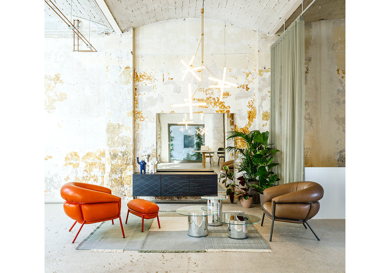 rebosa sobre la estructura de hierro que se deja desnuda para contrastar con el tacto lujoso de la piel. Disponible