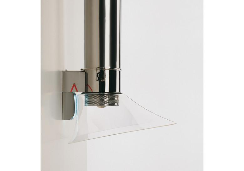 flexible y filtro en aluminio. Soporte pared en fundición de aluminio. Campana en metacrilato transparente.