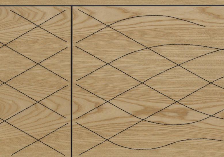 TailoringTM, en hilo color negro en la madera de fresno natural y en hilo color azul en la madera te?ida