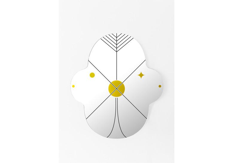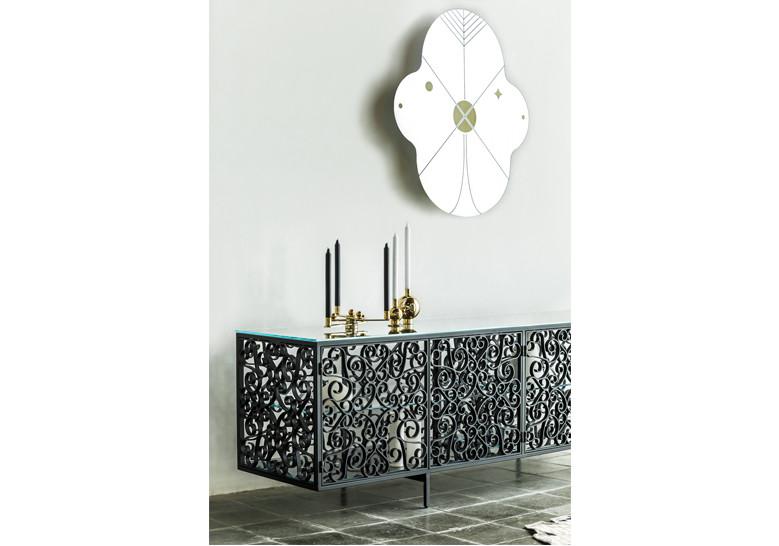 Espejos en dos tama?os diferentes, con decoraciones aplicadas en dorado y negro. Trasera en negro.
