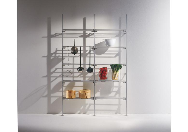 La estantería Hypóstila II es la versión con estantes de tubo de aluminio de la Hypóstila, dise?ada por