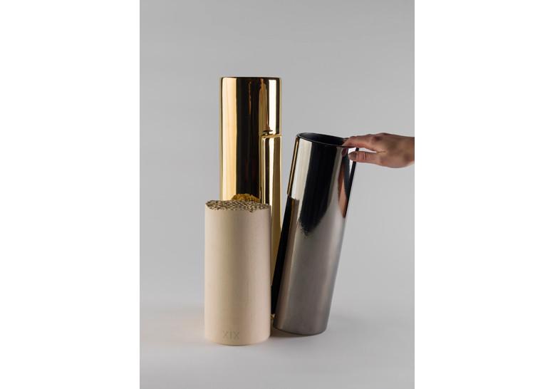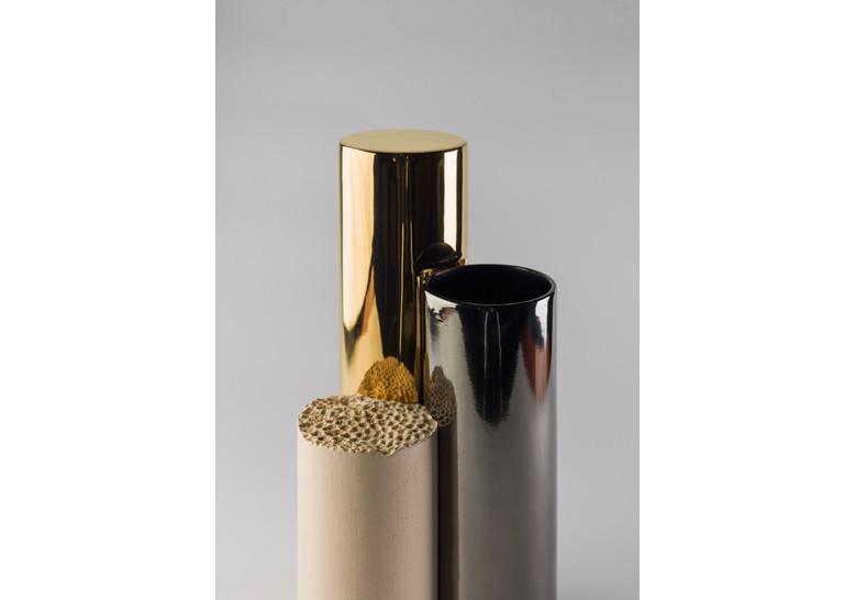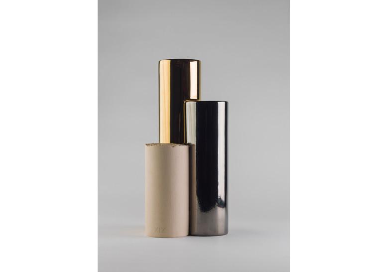 Cerámica esmaltada con tres acabados: oro de 24 kilates, platino y engalba de color beige.