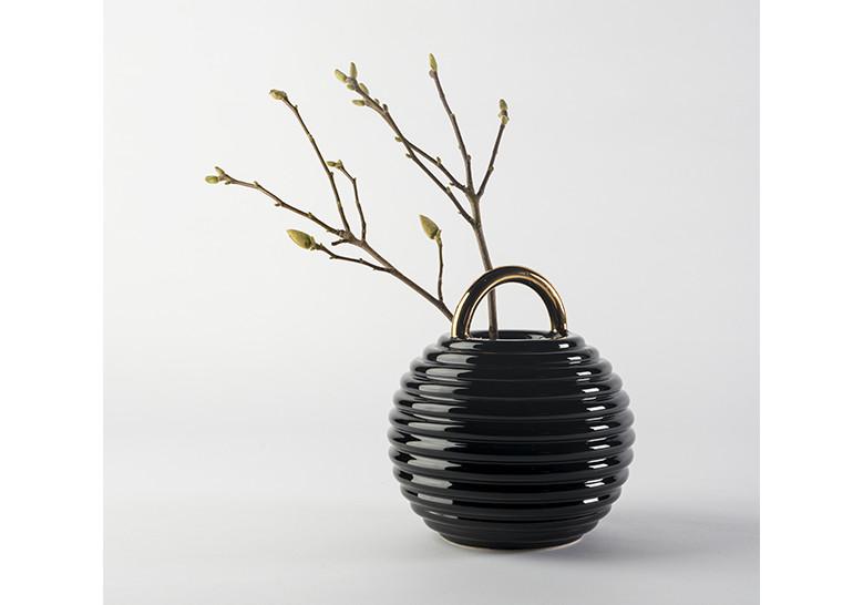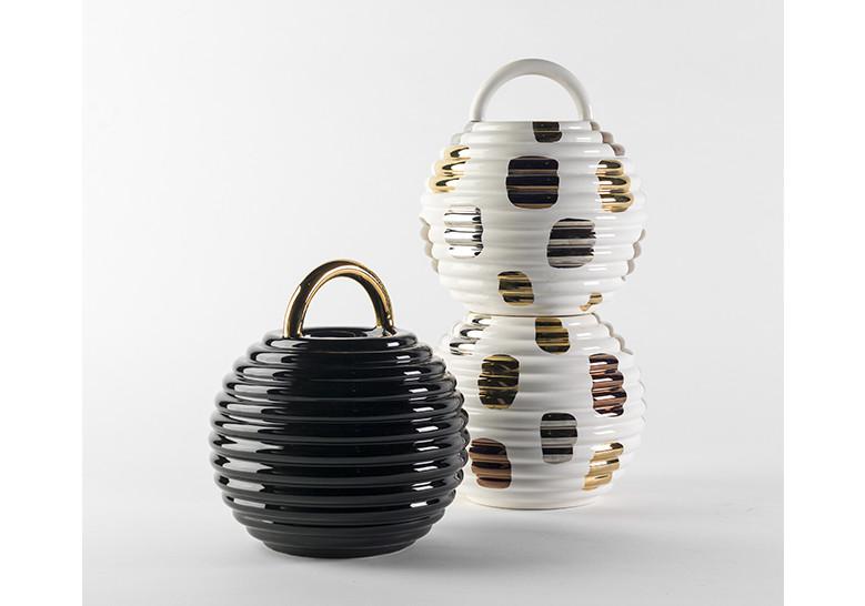 Jarrones de cerámica esmaltada en color blanco o negro con detalles a mano en oro, platino y cobre.