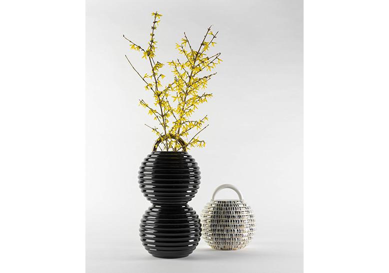 Los jarrones Grasso se presentan en diversos acabados. Los básicos son o todo en blanco, o en negro con