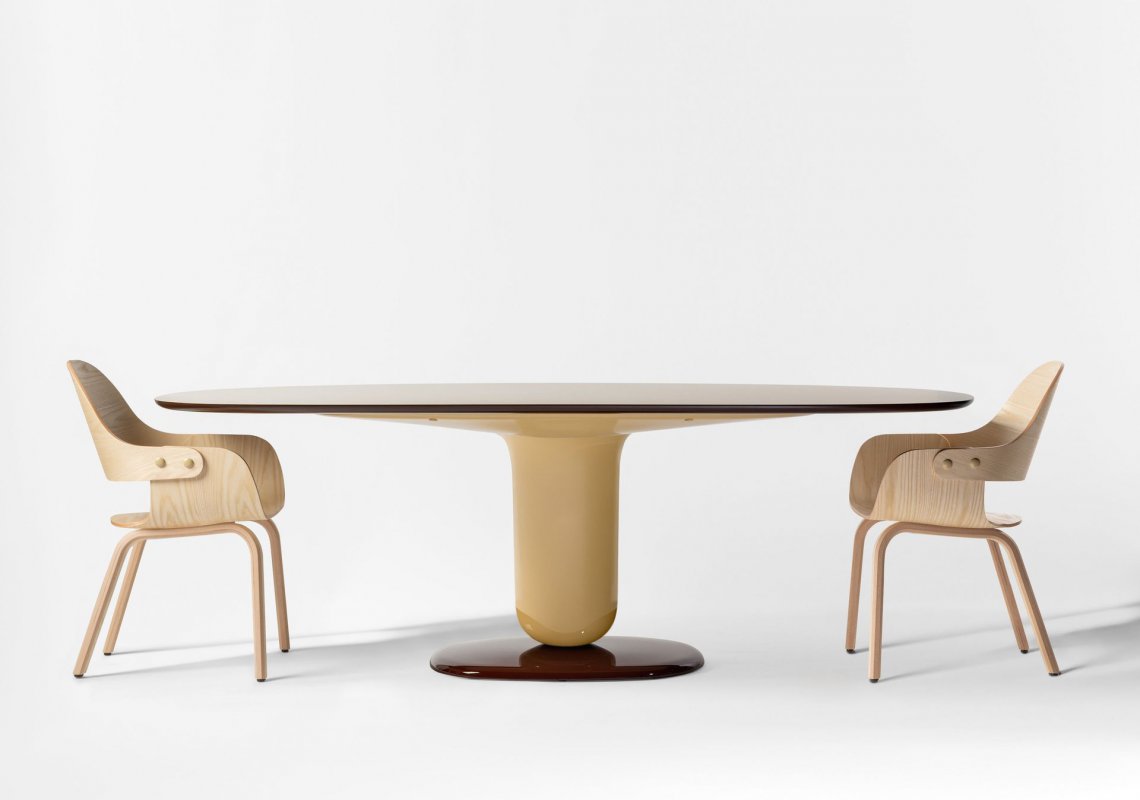 Now more than ever we spend a lot of time in our homes eating, working and sharing moments. The explorer dining table was born from the idea of inclusion, eliminating the obstacles of the table by getting rid of the side legs, trying to create a spacious and comfortable space but being sculpturally strong at the same time, an iconic piece that can be admired.