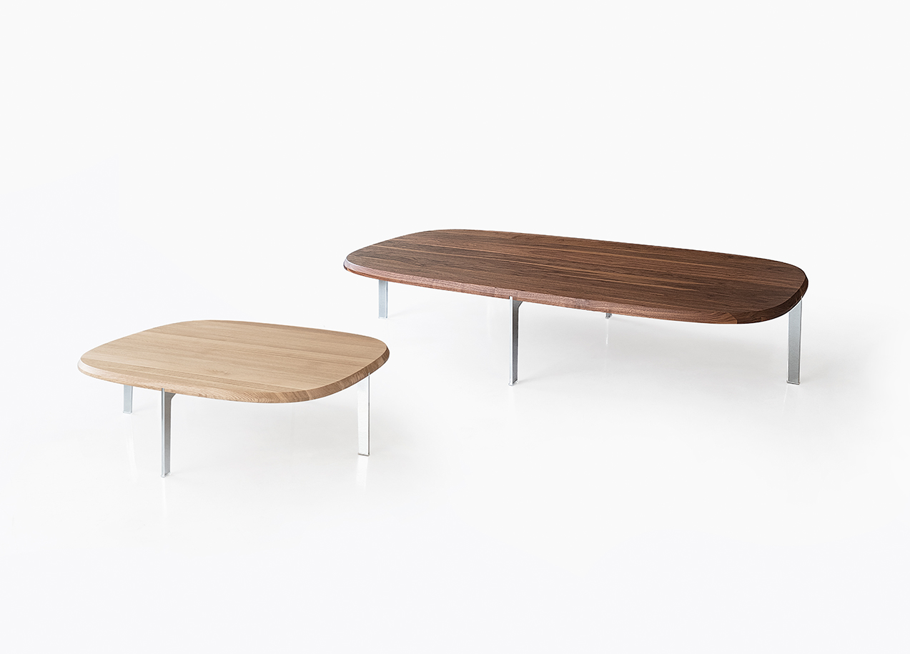 A collection of solid wood coffee tables with metal frames. Area has pleasing details such as bevelled edges and rounded corners making it a beautiful surface to add to your living area.