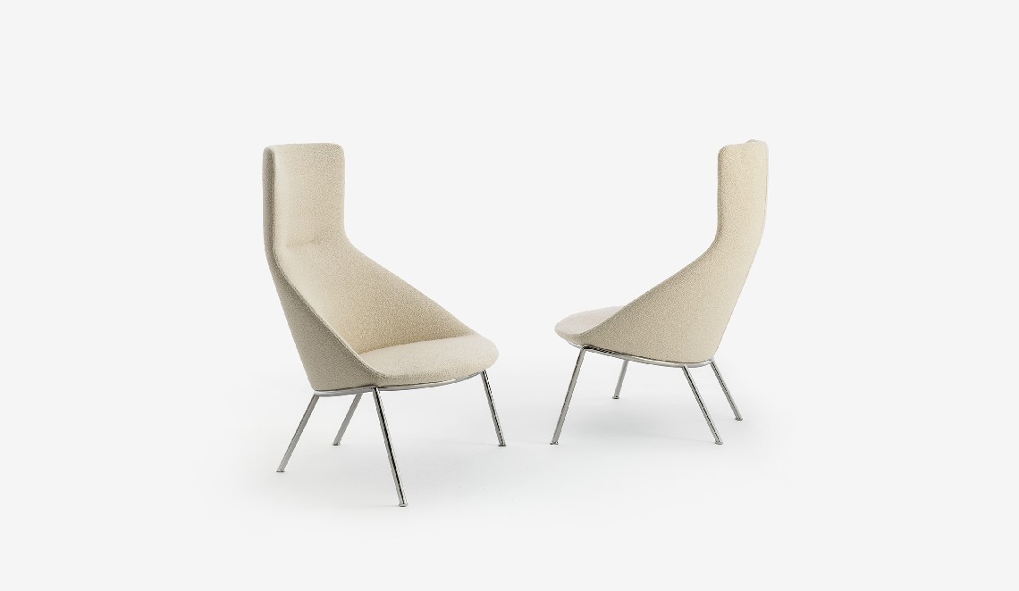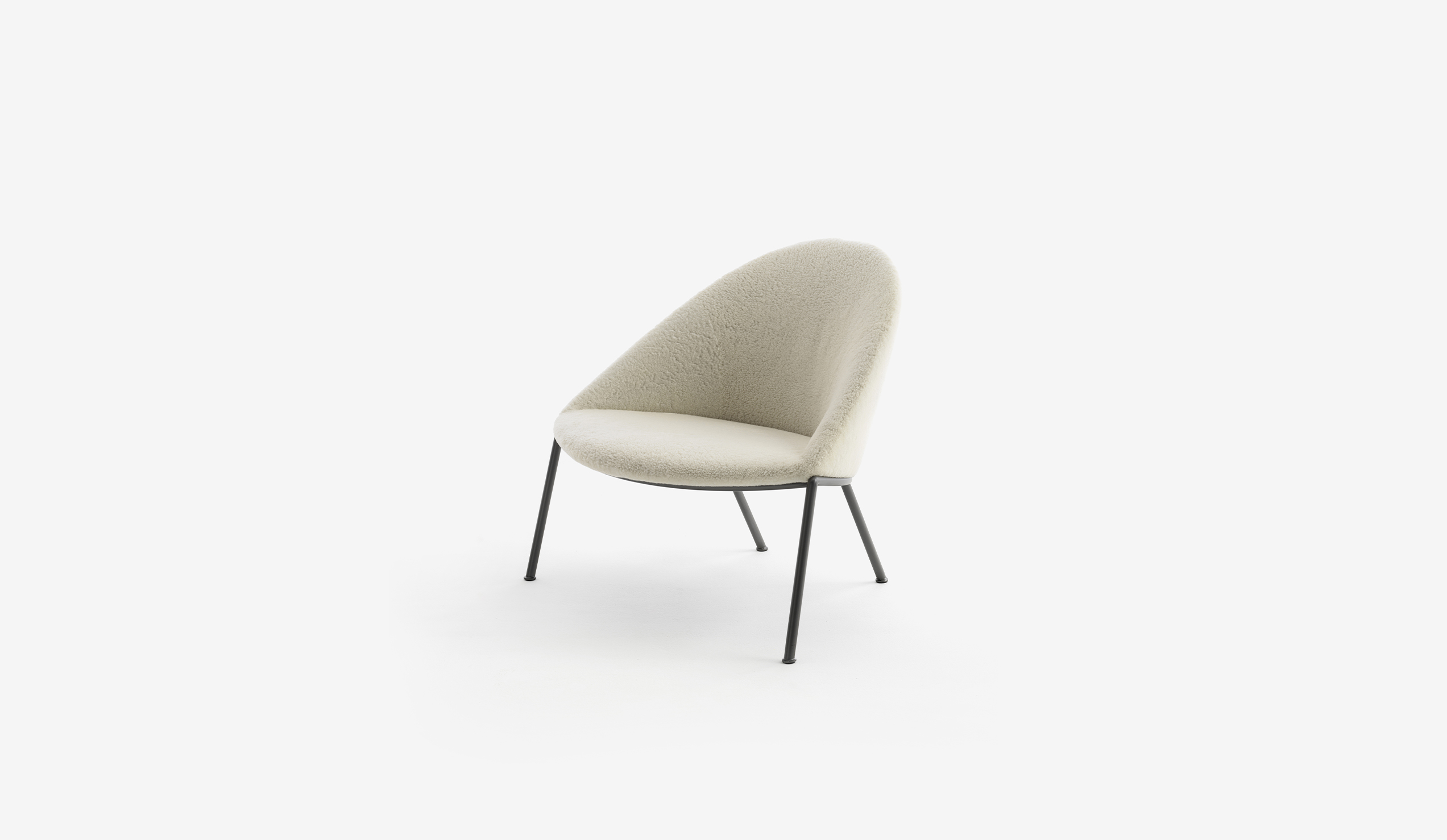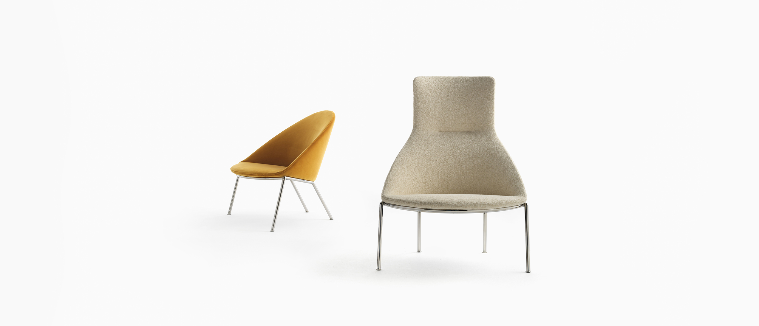 The flowing organic shape envelops the body and provides comfort within a small footprint. A responsive webbing seat is concealed within the formed foam and cradles the user.