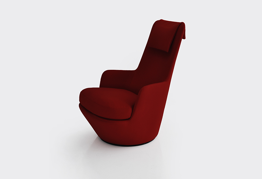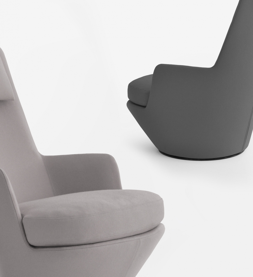Hi Turn is a high back lounge chair that swivels. Comfortable and tailored, it is a lovely addition to any space.