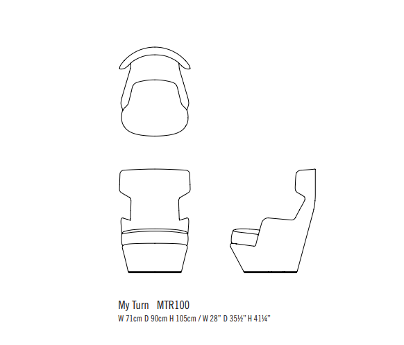 A contemporary wingback chair that swivels. The My Turn is a commanding chair with a surprisingly small footprint.