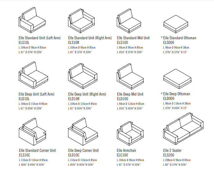 Elle is all about comfort. Memory foam seating with a downy top. Elle invites us to sit and relax.