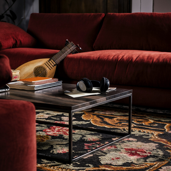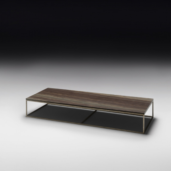 Coffee table with supporting structure in metal matt dark bronze finishing. Top in Elegant Brown stone