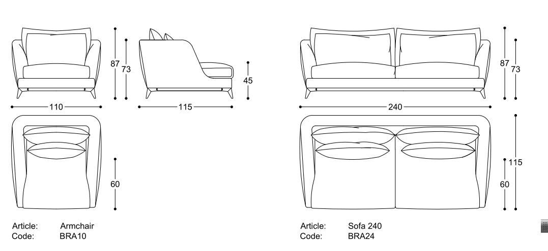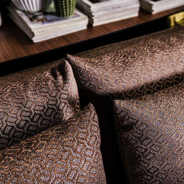 in different densities and memory foam. Back cushions in 100% European channelled goose feather, 10% down,