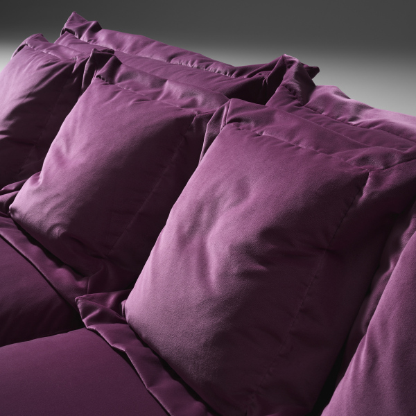 schienale in 100% piuma d’oca di provenienza europea, 10% piumino, chiusi in camere indipendenti l’una dall’altra.