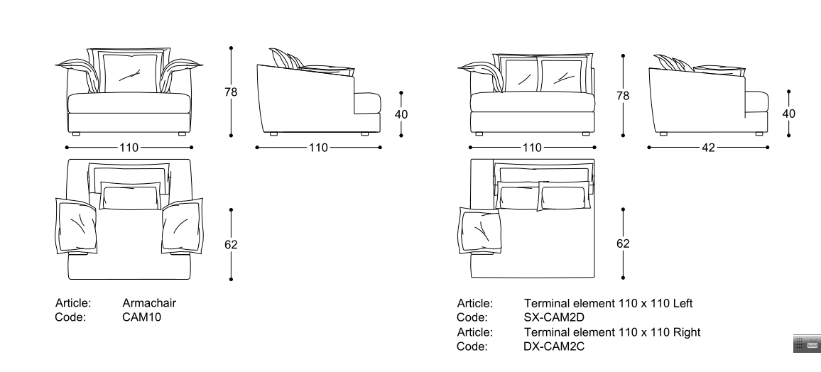 Cuscini seduta in 100% piuma d’oca di provenienza europea, 10% piumino, chiusi in camere indipendenti l’una