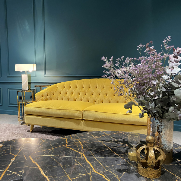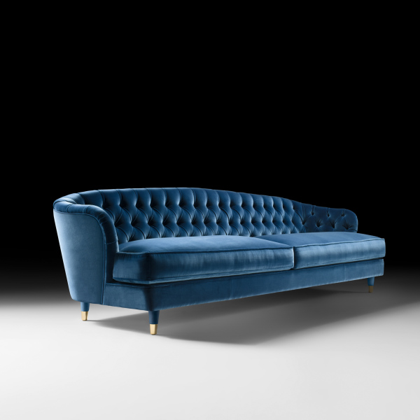 Una regalità che ha il sapore dei tempi antichi, quella del Savoi. Lo schienale è lavorato a mano a capitonnè, decorato sul retro con 400 borchie rivestiste nella versione in pelle. Ogni centimetro è un’esaltazione pura del design di grande qualità. Un prodotto d’èlite, per intenditori del bello in senso assoluto. La maestosità e l’unicità s’intrecciano e si fondono fino a creare un divano dai dettagli unici, pregiati e profondamente di classe. Seducente ed indimenticabile. I piedini rivestiti terminano con puntale in oro lucido o bronzo, un dettaglio per nulla lasciato al caso.