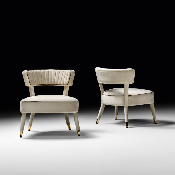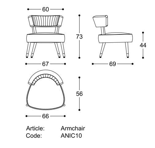 Poltroncina con struttura in legno di faggio, seduta e schienale in poliuretano espanso ignifugo. Base in frassino