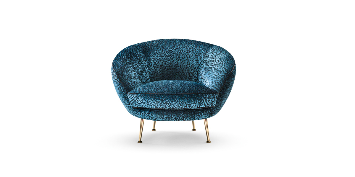 alta densità. Piedini in metallo finitura oro lucido o bronzo scuro opaco. Sfoderabile solo il cuscino.