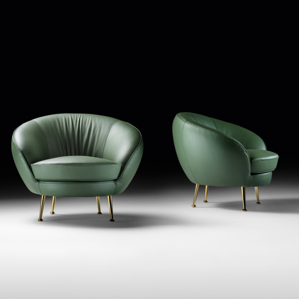 Poltroncina con struttura in legno di faggio, imbottitura e cuscino in poliuretano ignifugo a quote differenziate ad