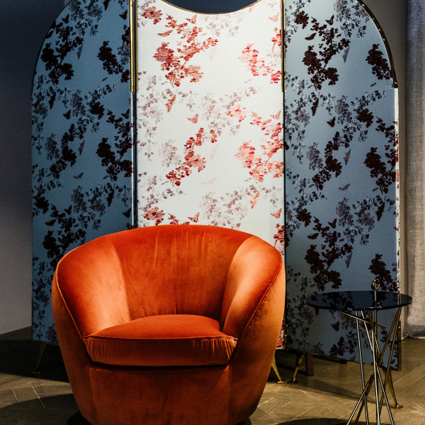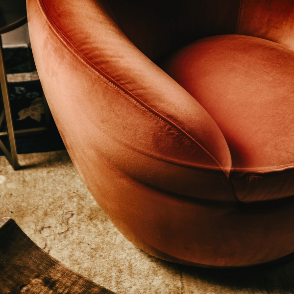 Swivel base (90° left and 90° right with return). Removable cover only the cushions.