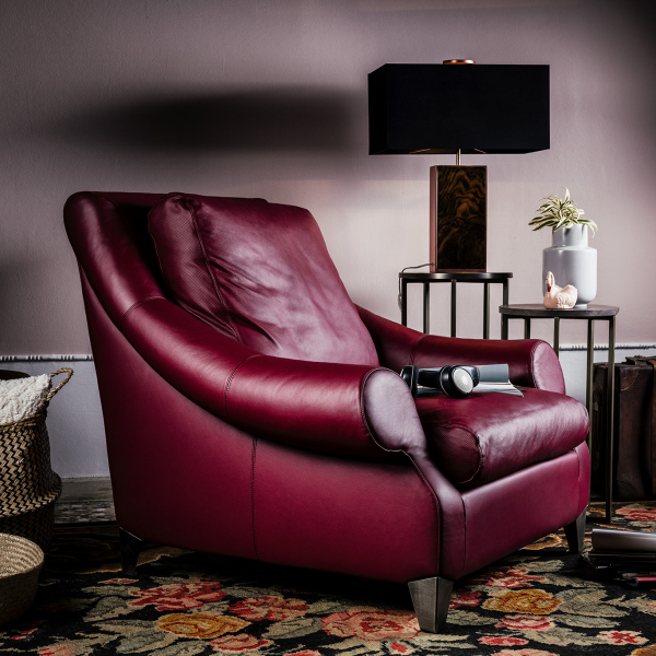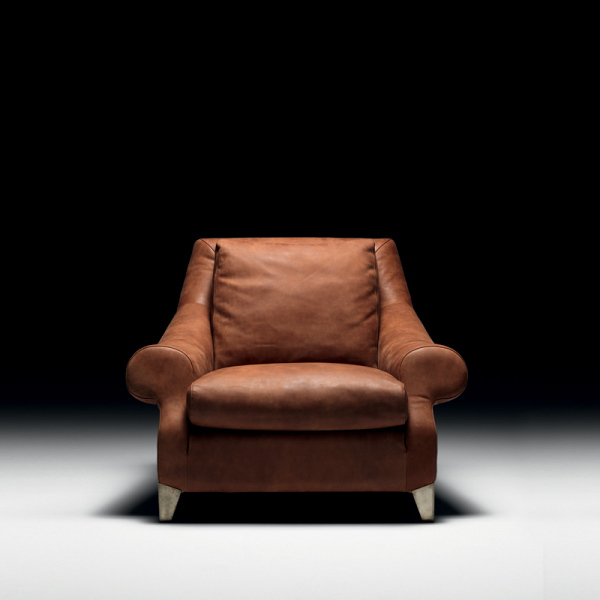 in both fabric and leather versions. Feet in metal matt dark bronze finishing.