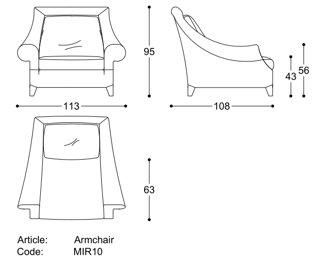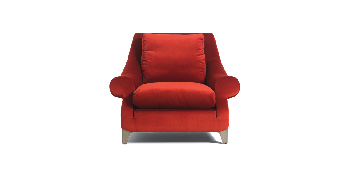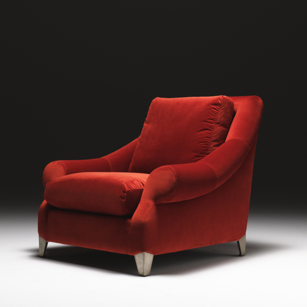 Poltrona con struttura in legno di pioppo e abete, molleggio a molle elicoidali. Imbottitura struttura in poliuretano