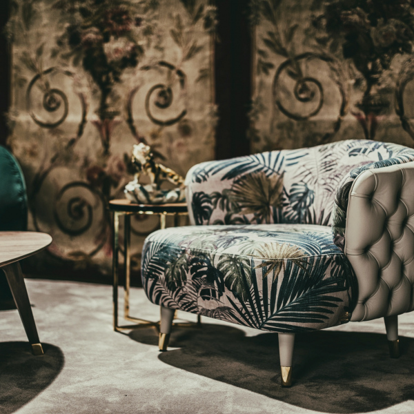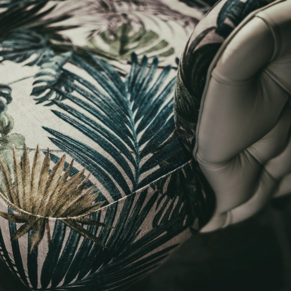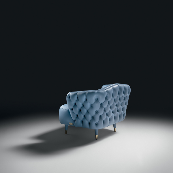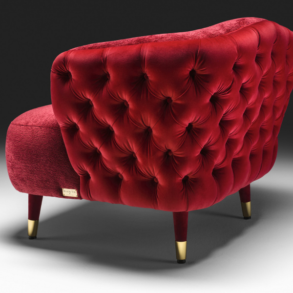 differenziate ad alta densità, retro schienale lavorato a mano a capitonné, piedi rivestiti con puntale in metallo oro
