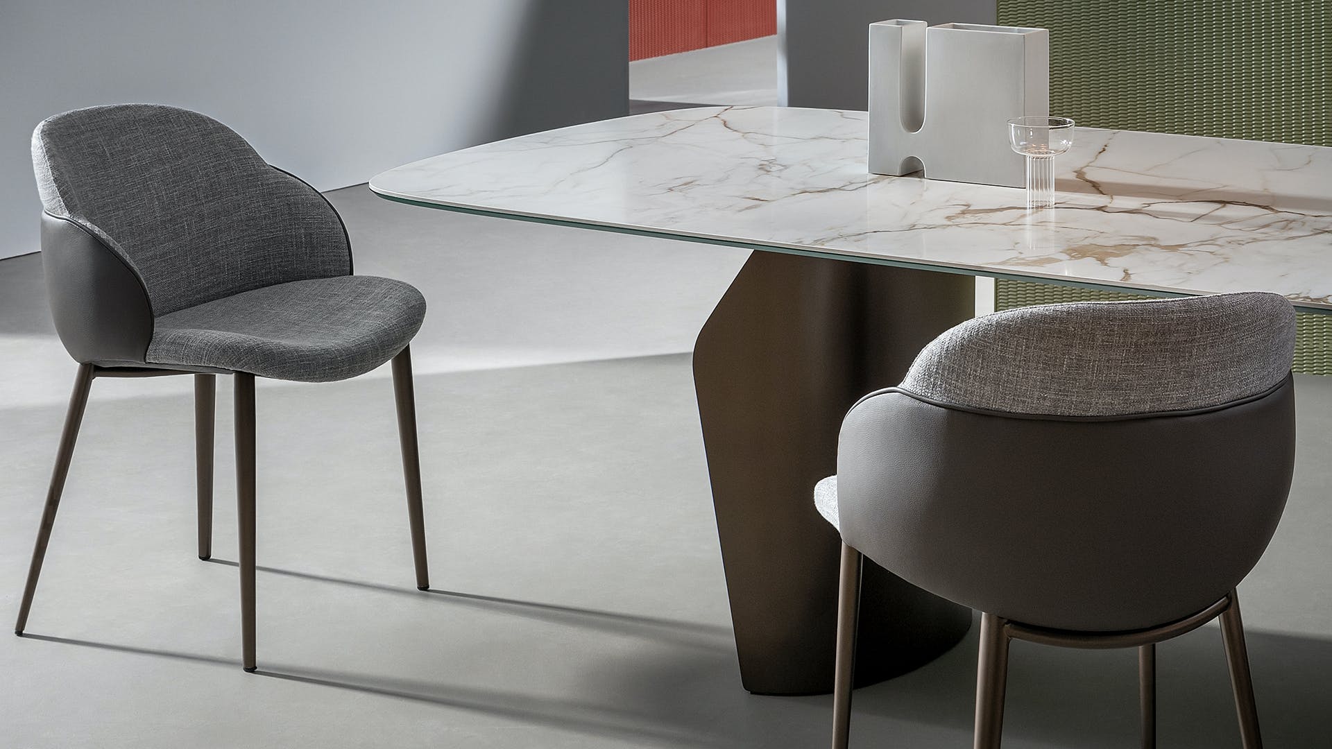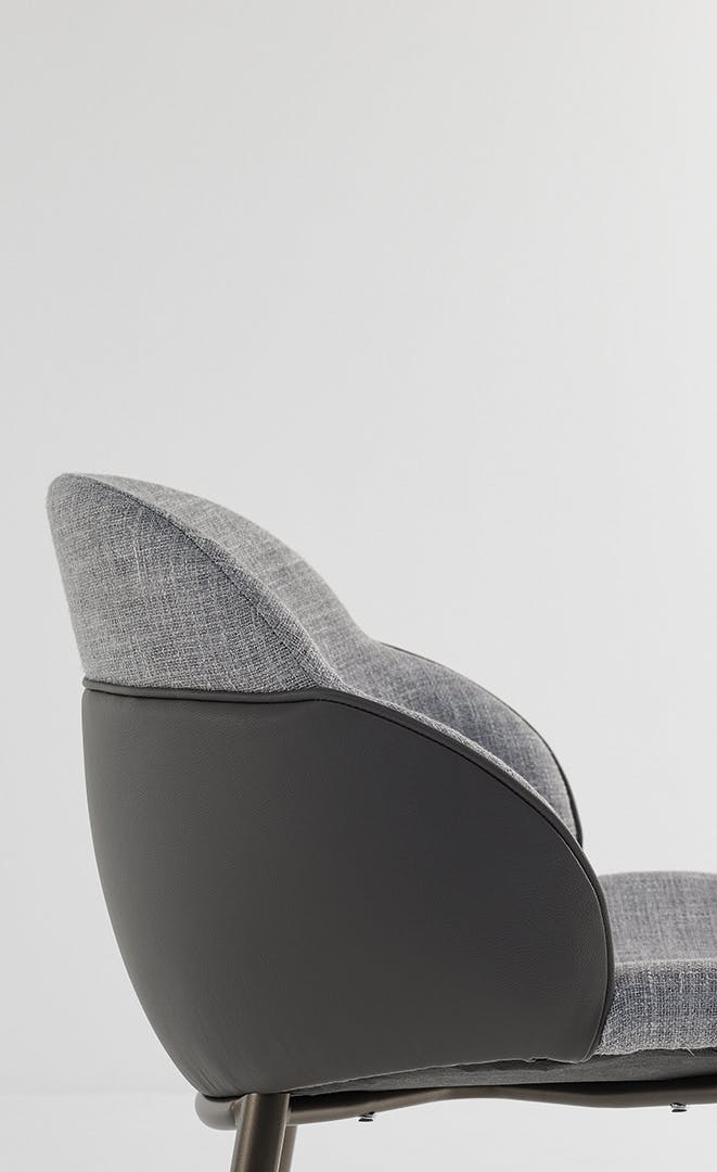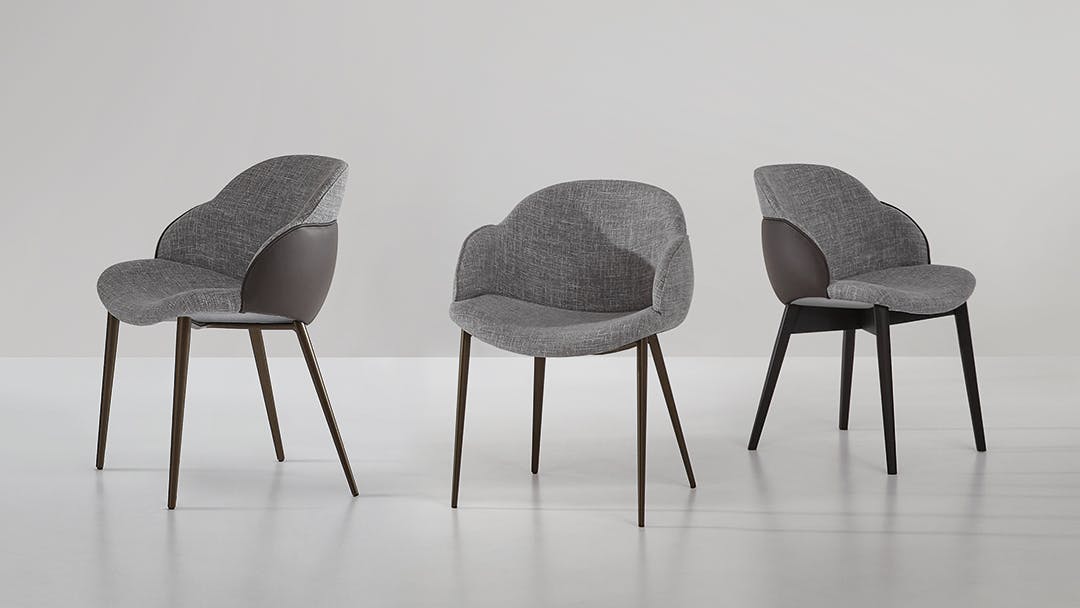 Comfortable and soft, the My way and Miss My way upholstered dining room chairs have a prominent backrest resembling an elegant shell that protects and envelops an exquisite casing. Thanks to the wide choice of finishes, materials and colours, and the various options of combining upholstery and bio-upholstery, My way chairs can be customised for a fluid dialogue with the surrounding environment.