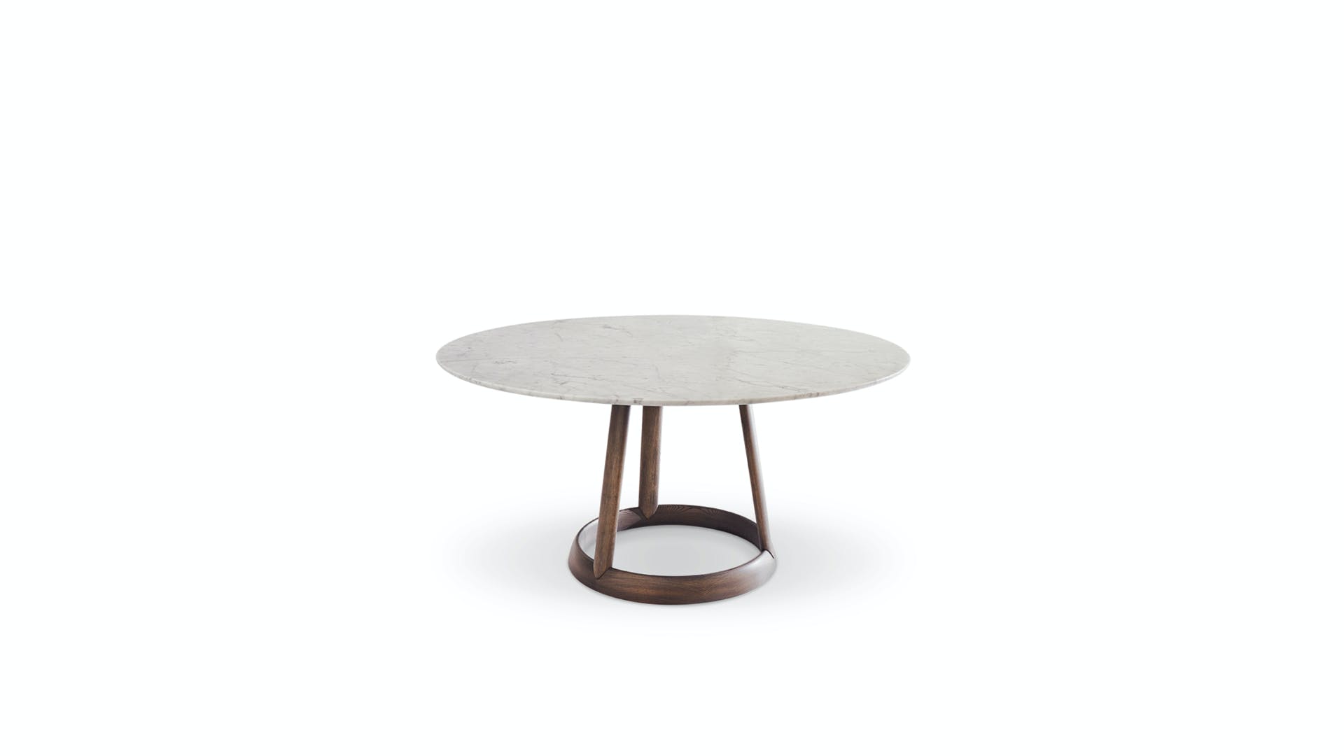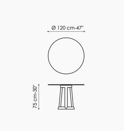 Marked by harmonious elegance, this fixed table combines a solid wooden base, available in two different finishes (American walnut and coal ash), with an oval or round top made with different finishes in marble, glass or ceramic. The elegance of the top’s lines, visible in its thinness, perfectly combines with the material value and the excellence of the cabinet work on the base: the result is a table that, even in its simplicity, expresses personality and visual lightness, displaying the most classic taste without, at the same time, giving up a more contemporary aesthetic. Greeny therefore lends itself to combinations with furniture of various styles: an elegant round dining table that can embellish and enhance any context.