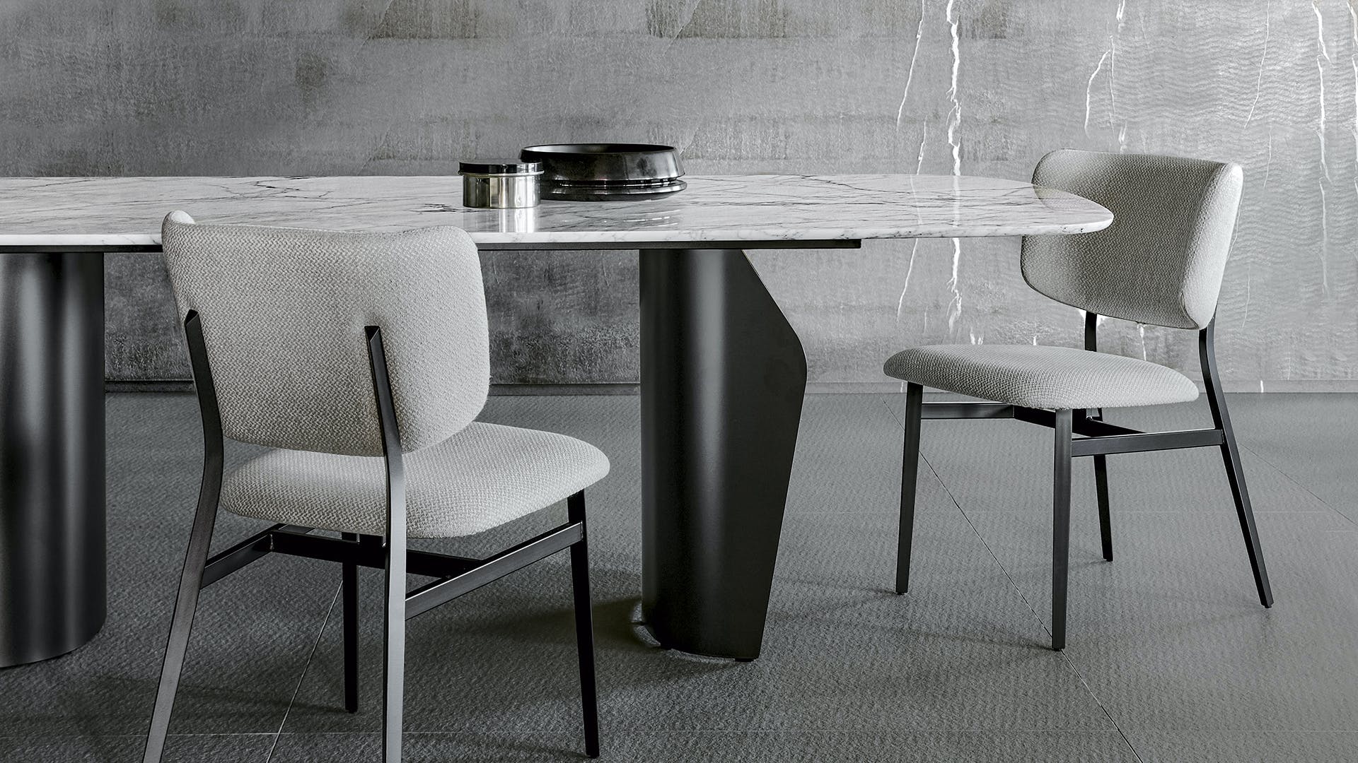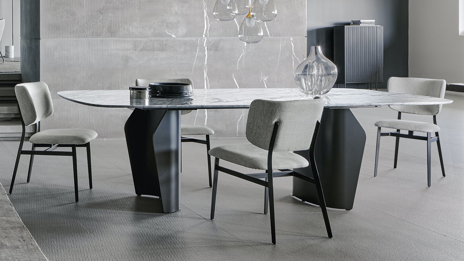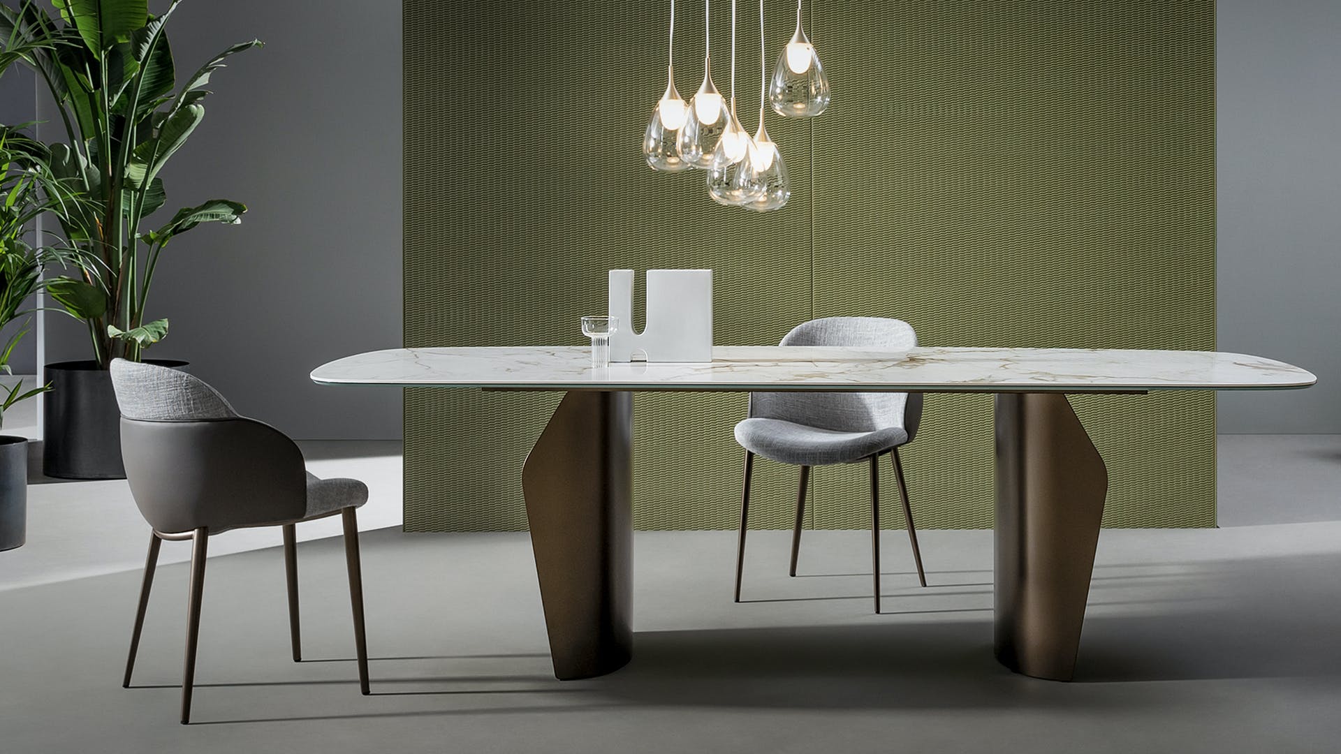 Flame’s main features are its harmonious shapes and light, sinuous volumes. The top, which is visibly suspended, is fully usable thanks to the position of the double base designed to optimize the overall space. Form and function are perfectly expressed in this table: the extensive customization options allow you to arrange it according to your tastes, needs and the mood of the surrounding space. The top is available in a number of sophisticated finishes – from wood to ceramic and marble – and you can choose from various metal options for the base. A wooden base is also available for this modern living room table (Flame Wood).