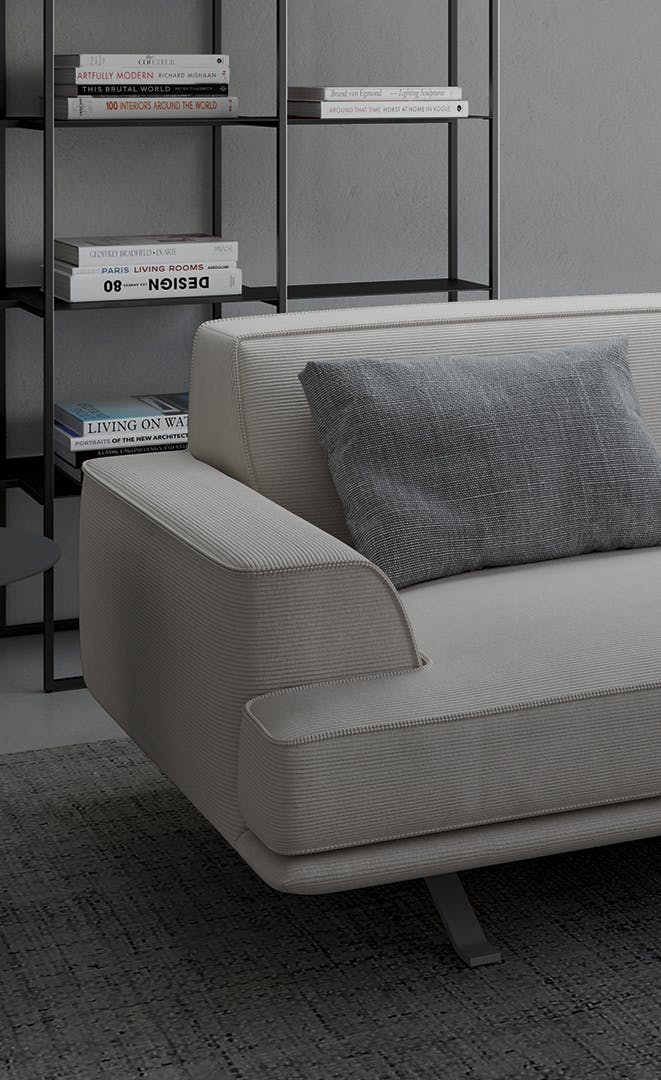 Rigorous linearity of shapes and softness of material coexist in Slab plus, a modern design sofa that can be perfectly included in the home with a balanced modernity and perfect for living areas with an innovative and contemporary spirit, to which it adapts with great flexibility thanks to the numerous elements contained in the collection. Not only aesthetic, but also comfort: the deep seating and the height of the backrest ensure excellent comfort and inspire total relaxation. The fully removable upholstery is available in fabric or leather; the original base in painted metal gives a suspended look and, resuming the squared lines of the padded body, ensures the visual consistency of the design.