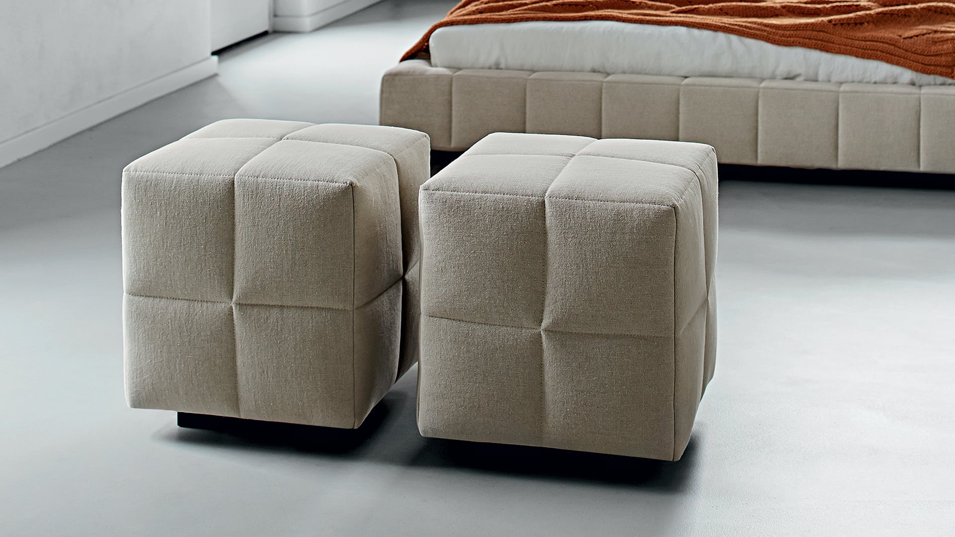 The Squaring accessories turn the sleeping area into a living space. Inspired by the series of beds of the same name, the geometry, covers and quilting which it recalls, the collection includes a bedside table, modern end of bed bench and pouf. All the elements are distinguished by the design strength and sartorial accuracy of the processes, characteristics that when combined with the severity of the lines, make them extremely contemporary and perfectly suited to modern residential styles. With completely removable covers available in fabric, leather or eco-leather, the Squaring accessories can be used individually or combined in a group, furnishing the sleeping area in an original and creative way and ensuring the utmost functionality and consistency of the design.