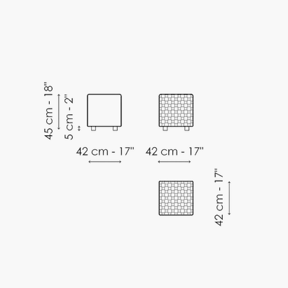 By paying attention to every single detail, the Intrecci elegant footstool collection expresses the authentic values of Made in Italy, the true implicit content of every Bonaldo product. The woven seams, which represent an elegant ornamental decoration, embellish the covering of a design object where aesthetics and practicality come together. The Intrecci collection includes a bench seat and poufs in three different sizes, designed to fit every need and to create coordinated environments. The removable upholstery is available in fabric or leather.