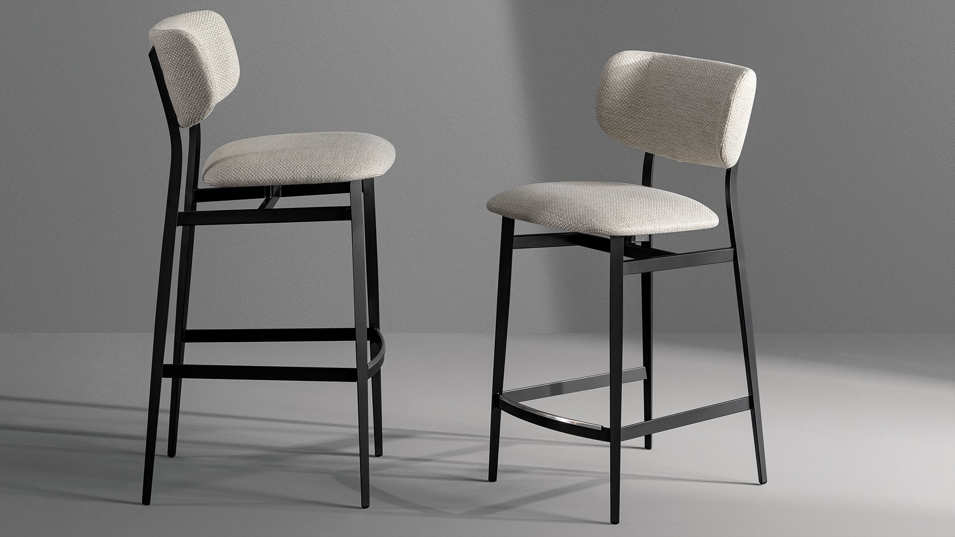 Notable for its slender and subtle shape, the Noor too upholstered stool is the result of a decision to highlight the shapes and enhance the comfort qualities of the padded sections which are mounted on the linear steel frame. The project is highlighted by the design of the cantilevered seat and backrest which although supported by the linear steel structure, seem almost suspended in the void. The large padded sections are designed to offer the body comfort while sitting along with freedom of movement. Noor too is available in different finishes, colours and materials, starting with leather, eco-leather or fabric upholstery.