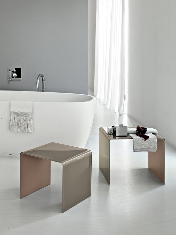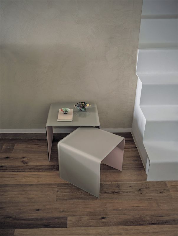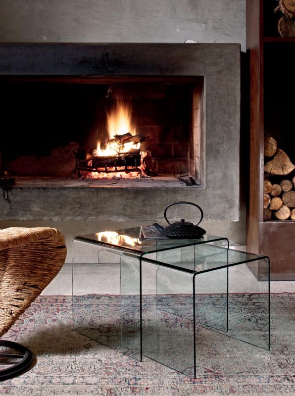 Tavolino a ponte in cristallo curvato