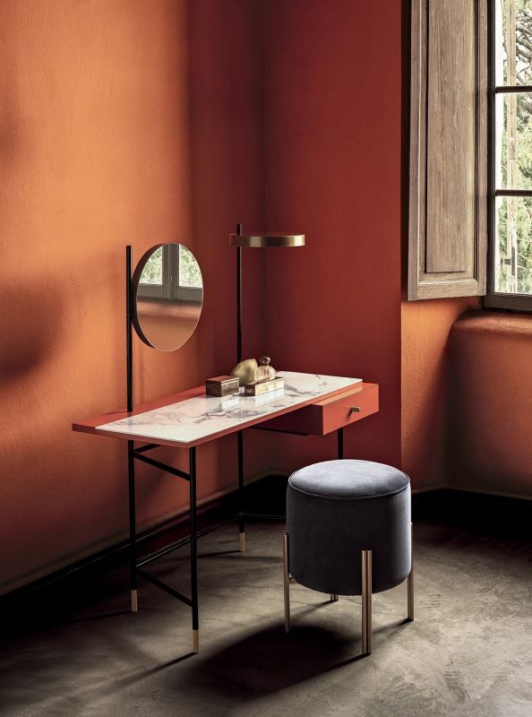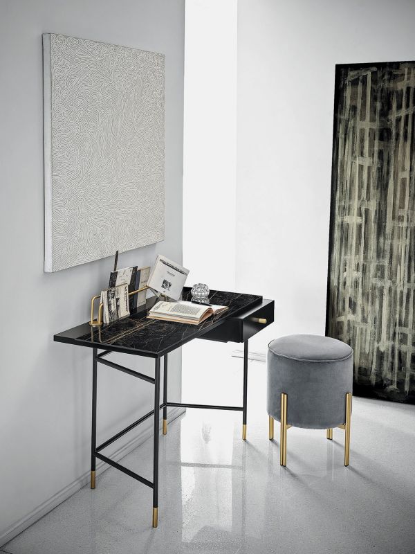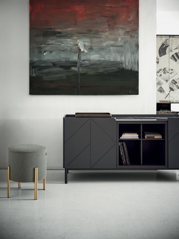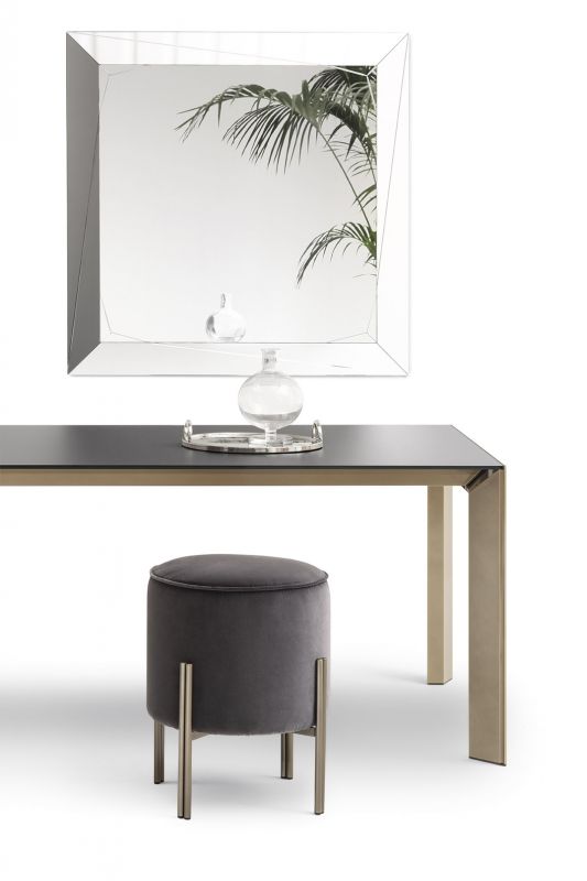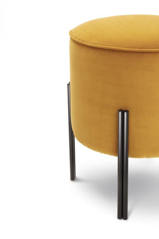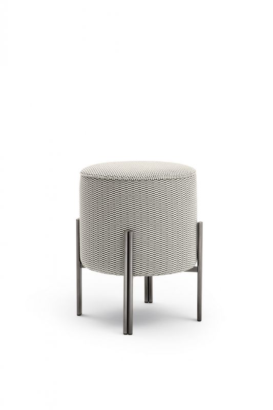 Ottoman with lacquered Metal frame, upholstered and covered in Eco Leather, Technical velvet, Mambo and Lulù fabric, Waterproof Nabuk, Waterproof printed Nabuk, Pure Virgin Wool, Velvet, Decò fabric, Kvadrat field and Kvadrat Coda fabric, Premium Nappa Leather.