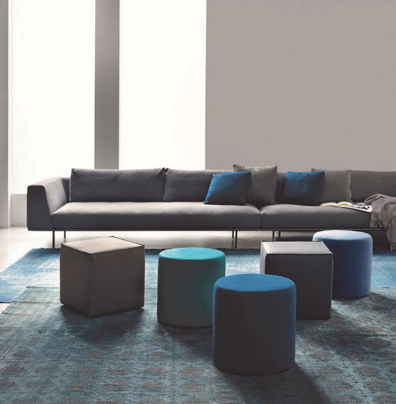 Ottoman upholstered and covered in Eco Leather, Mambo fabric, Lulù fabric, Waterproof Nabuk , Waterproof printed Nabuk or Pure Virgin Wool.