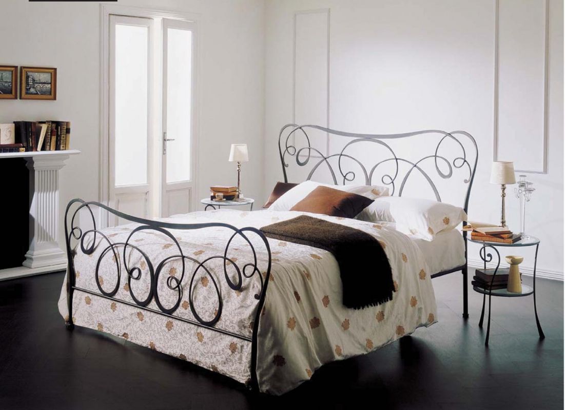 Iron bedside table with two transparent glass tops and sandblasted edge