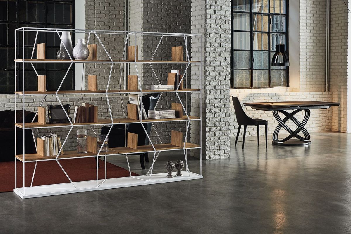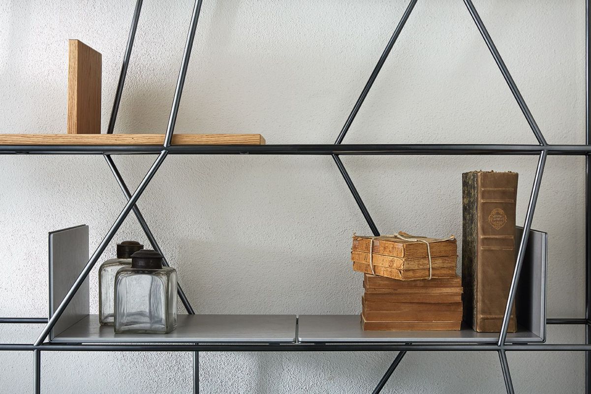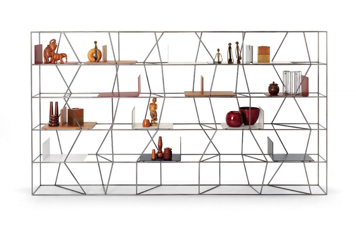 Bookcase with lacquered Metal frame.