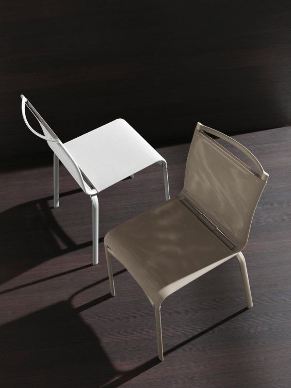 Outdoor stackable Chair/Chair with arms with lacquered metal frame, shell in texplast or soft texplast.