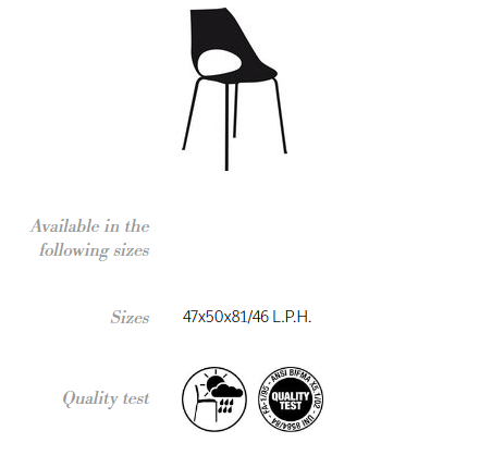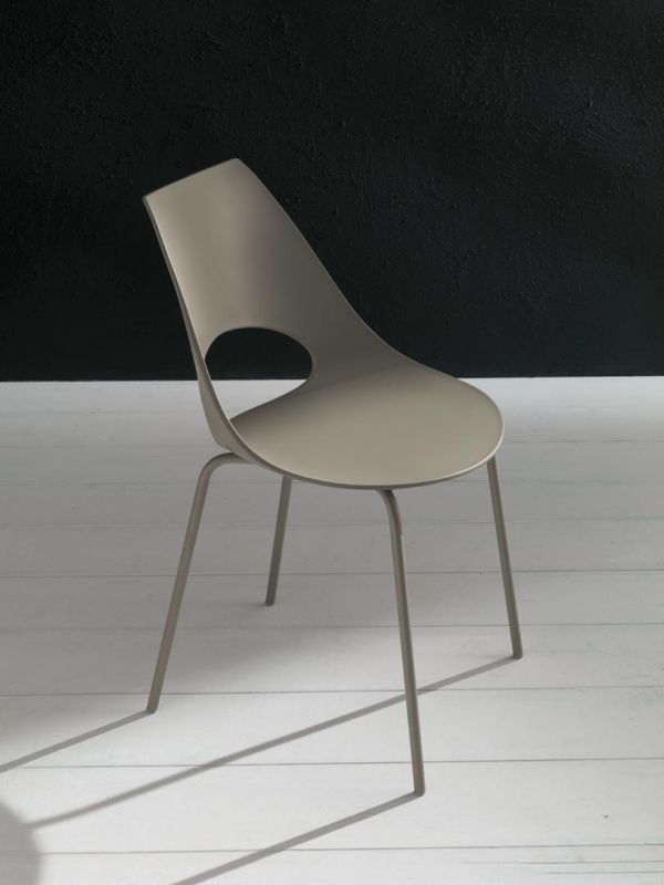 Outdoor chair with lacquered metal frame, shell in polypropylene.