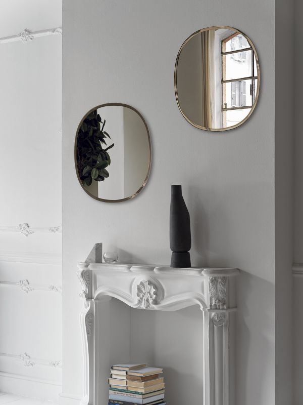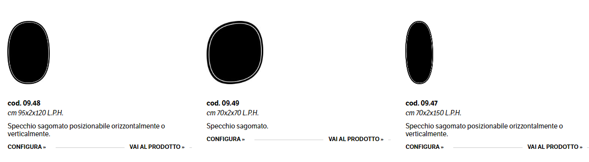 Specchio sagomato posizionabile orizzontalmente o verticalmente e specchio sagomato fisso.