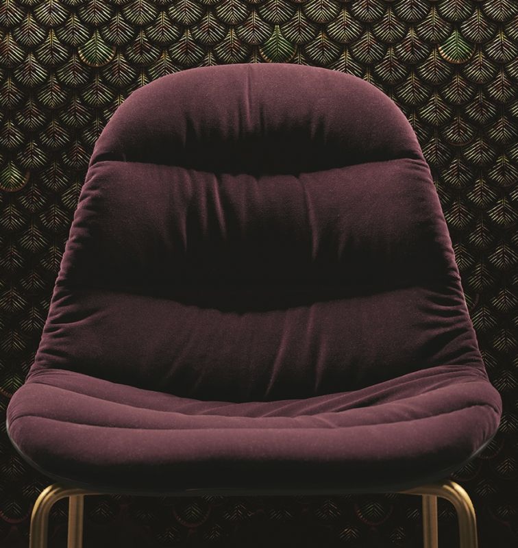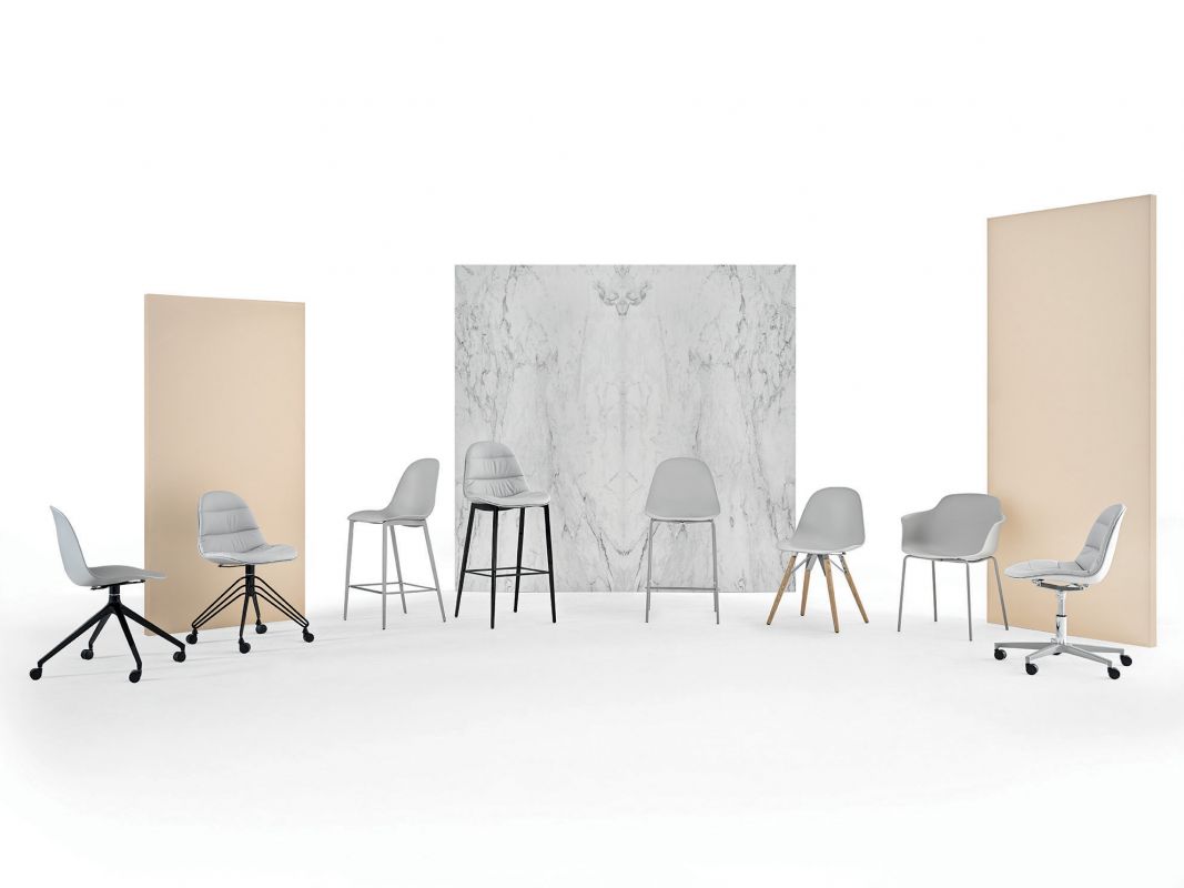 Barstool with lacquered Metal frame, triangular legs and round section. Shell in polypropylene upholstered and covered on the front in Eco Leather, Technical velvet, Mambo and Lulù fabric, Waterproof Nabuk, Waterproof printed Nabuk, Pure Virgin Wool, Velvet, Decò fabric, Kvadrat Field fabric, Kvadrat Coda fabric, Premium Nappa Leather